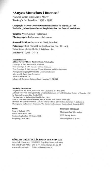 Amerikalı ünlü fotoğraf sanatçısı Laurence Salzmann'ın 1984-89 yılları arası ülkemizi ziyareti sırasında çektiği renkli ve siyah-beyaz fotoğraflardan oluşan bu albüm kitap, dönemin yaşamını ve hayat görüşünü aksettirmesi açısından tarihe adeta ışık tutuyor. Kitapta yer alan resimler Türkiye dahil olmak üzere pek çok ülkede değişik zamanlarda sergilendi; çeşitli koleksiyonlara dahil edildi.