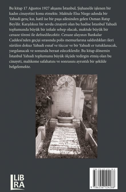 Bu kitap 17 Ağustos 1927 akşamı İstanbul, Şişhane’de işlenen bir kadın cinayetini konu etmekte. Maktule Elsa Niego adında bir Yahudi genç kız, katil ise bir paşa ailesinden gelen Osman Ratıp Bey’dir. Karşılıksız bir sevda cinayeti olan bu hadise İstanbul Yahudi toplumunda büyük bir infiale sebep olacak, maktule büyük bir cenaze töreni ile defnedilecektir. Cenaze alayının Bankalar Caddesi’nden geçişi sırasında polis memurlarına saldırdıkları ileri sürülen dokuz Yahudi esnaf ve tüccar ve bir Yahudi er tutuklanacak, yargılanacak ve sonunda beraat edeceklerdir. Bu kitap dönemin İstanbul Yahudi toplumunu büyük ölçüde tedirgin etmiş olan bu cinayeti, mahkeme safahatını ve sonrasını ayrıntılı bir şekilde belgelemekte.
