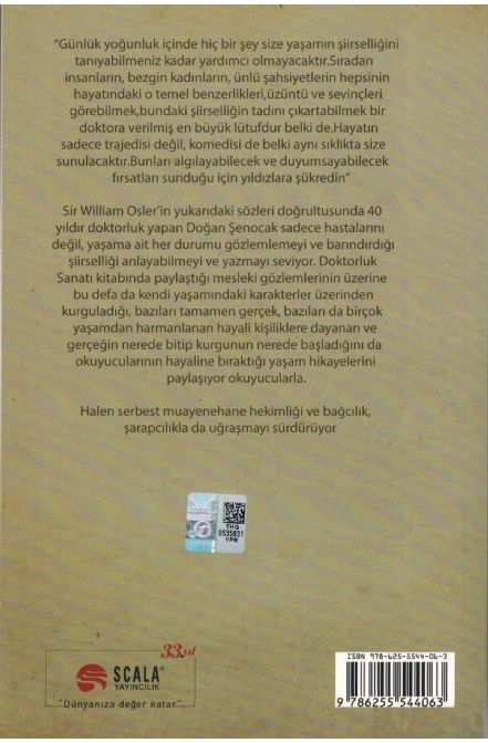 Sir William Osler’in yukarıdaki sözleri doğrultusunda 40 yıldır doktorluk yapan Doğan Şenocak sadece hastalarını değil, yaşama ait her durumu gözlemlemeyi ve barındırdığı şiirselliği anlayabilmeyi ve yazmayı seviyor. Doktorluk Sanatı kitabında paylaştığı mesleki gözlemlerinin üzerine bu defa da kendi yaşamındaki karakterler üzerinden kurguladığı, bazıları tamamen gerçek, bazıları da birçok yaşamdan harmanlanan hayali kişiliklere dayanan ve gerçeğin nerede bitip kurgunun nerede başladığını da okuyucularının hayaline bıraktığı yaşam hikayelerini paylaşıyor okuyucularla.