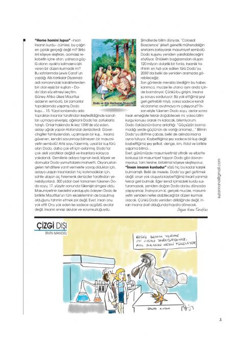 “Homo homini lupus” –insan insanın kurdu– cümlesi, bu çağın en çıplak gerçeği değil mi? Birbirini köşeye sıkıştıran, acımasız rekabetin içine atan, yalnızca güçlü olanın ayakta kalmasına izin veren bir düzen kurmadık mı? Bu satırlarımda Lewis Caroll’un yazdığı Alis Harikalar Diyarında adlı romanındaki karakterlerden biri olan eşsiz bir kuştan – Dodo’dan söz etmeyi seçtim: